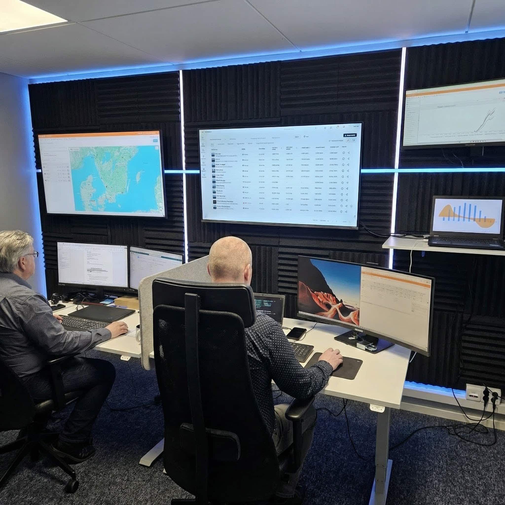 Från Operations Center i Hultsfred övervakar och kontrollerar vi mer än 300 MWp solenergianläggningar över hela Sverige, samt ett växande antal BESS-installationer av allt större skala.
