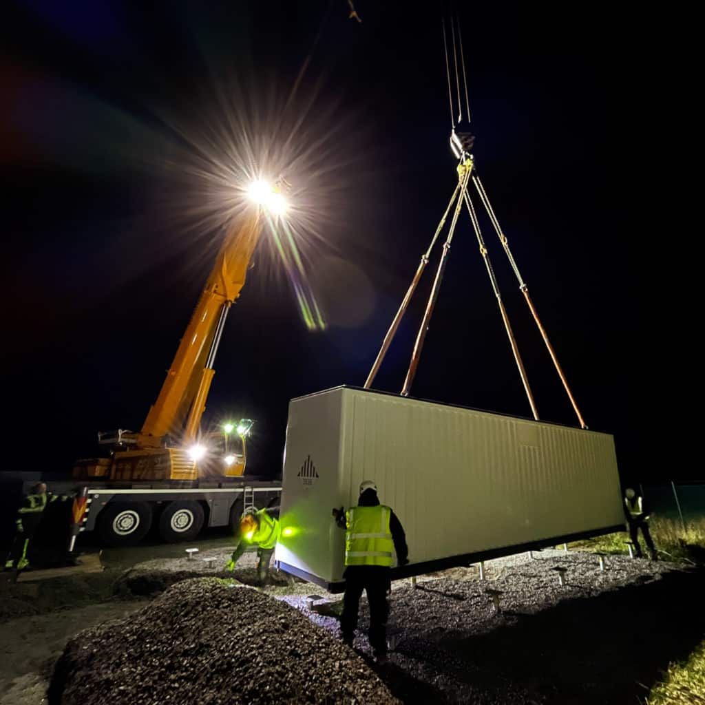 - Energilagren levereras i förmonterade containrar som placeras med kran