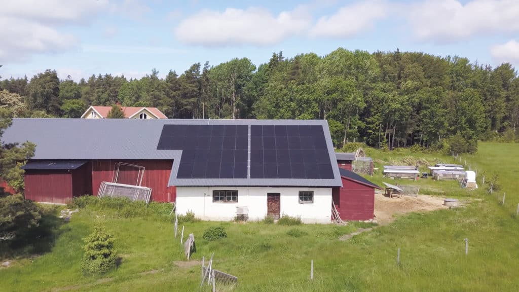 Att sätta upp i en solcellsanläggning på taket eller marken är en av de bättre investeringarna ett lantbruk kan göra på lång sikt. Avkastningen får du direkt i form av lägre elkostnad och dessutom bidrar gården till att minska koldioxidutsläppen med 65 kg per installerad kvadratmeter och år.