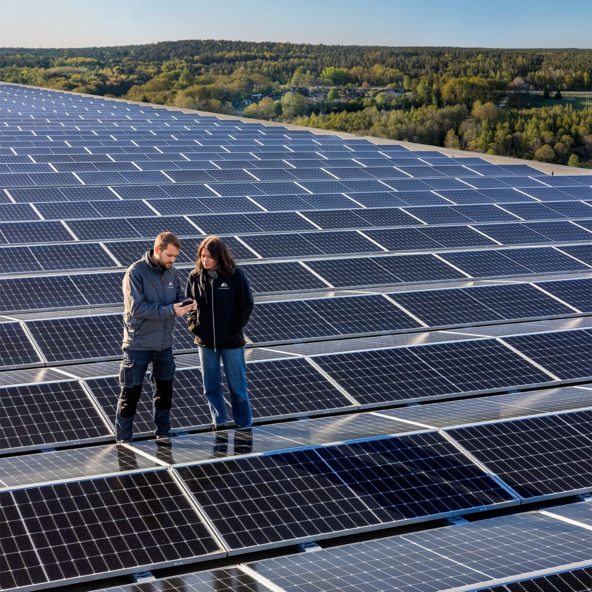 Vi tar ansvar hela vägen – från affärsanalys och förstudie till byggnation, uppföljning och löpande förvaltning. Med erfarenhet från några av Sveriges största takanläggningar vet vi vad som krävs för att bygga anläggningar som håller i 30–40 år och levererar stabil produktion över tid.